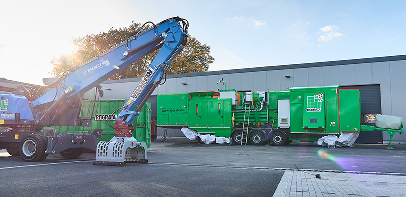 Mit dieser mobilen Kanalballenpresse, die unter dem Namen EPG 90 VG5 eingesetzt wird, ist Regrata ein technischer Meilenstein gelungen. Das Gerät komprimiert lose und großvolumige Materialien auf einen Bruchteil ihrer vorherigen Größe. Für den Transport des Materials sind das Welten. Wo vorher 1,5 Tonnen transportiert werden konnten, ist in der komprimierten Form Platz für mehr als 10 Tonnen. Dementsprechend lassen sich zahlreiche Deponiewege einsparen. In Zeiten explodierender Kraftstoffkosten ist dies ein wichtiges Argument. Ganz zu schweigen von unnötigen Emissionen, die sich auf diese Weise drastisch reduzieren lassen.