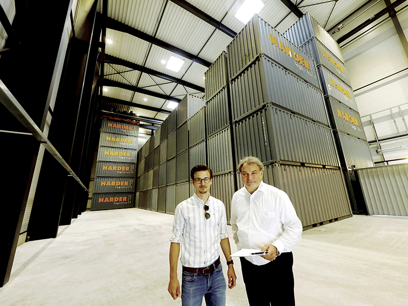 Doch nicht nur das Thema Sicherheit spielte beim Bau eine Rolle. Nachhaltigkeit und Umweltverträglichkeit waren ebenso wichtige Punkte. Johannes Danieli, Junior Projektleiter bei Harder Logistics, freut sich mit dem „Container-Hochhaus“ eine nachhaltige Lösung für den Kapazitätsausbau seines Unternehmens gefunden zu haben. Mit dieser Bauweise lässt sich der „Flächenfraß“ schließlich deutlich reduzieren. Den geringeren Flächenverbrauch quantifiziert er wie folgt: „Diese neue Hightech-Immobilie kann bis zu 250 Container auf einer Fläche von 950 Quadratmeter fassen. Damit werden für die Boxen gerade einmal 10 Prozent der bisherigen Fläche verbraucht. Bei herkömmlicher Lagerung würden 9.000 Quadratmeter an Platz benötigt.