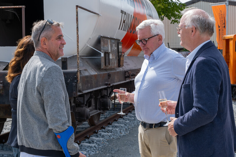 Kürzlich wurde der ausrangierte Bahnwaggon mit einer feierlichen Enthüllungszeremonie der Öffentlichkeit präsentiert. Anwesend waren neben zahlreichen Mitarbeitern auch Wulf Höppner, Geschäftsführer von Matthäi Trimodalbau, sowie Andreas Höttler und Bernd Afflerbach aus der Geschäftsführung der Matthäi-Gruppe.
