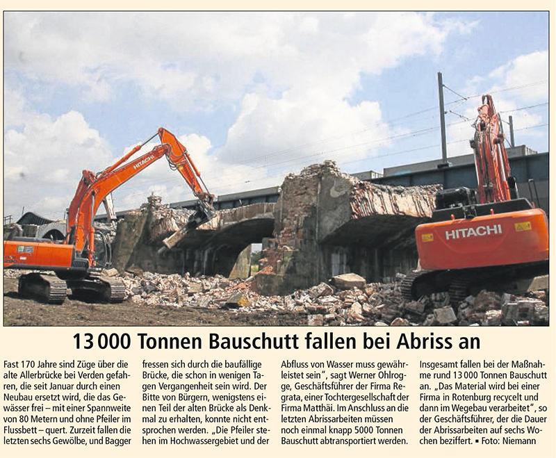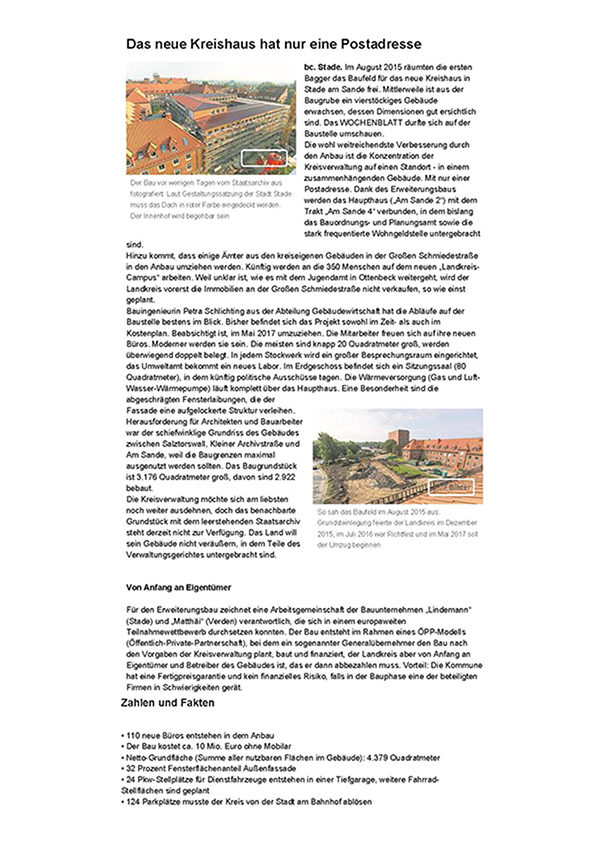 Zeitungsartikel aus der Verdener-Aller-Zeitung vom 22.08.2016.Die Bauarbeiten hat Matthäi Trimodalbau durchgeführt.