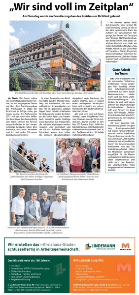 Zeitungsartikel aus dem Jeverschen Wochenblatt vom 18.09.2016.Die Bauarbeiten wurden von Matthäi Trimodalbau durchgeführt.