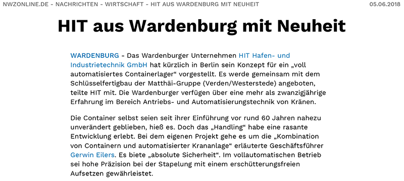 Dort haben Sie die Möglichkeit sich von der automatisierten, zukunftsorientierten und damit wirtschaftlichen Containerlagerhalle selbst zu überzeugen. Noch am gleichen Tag werden Sie in der Lage sein die komplette Anlage allein zu bedienen.