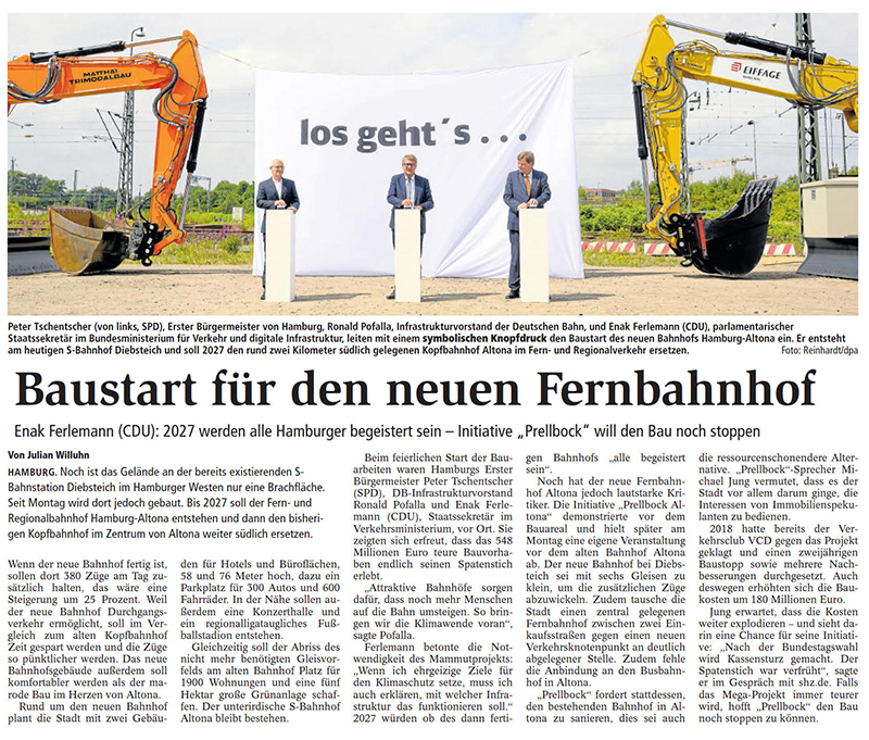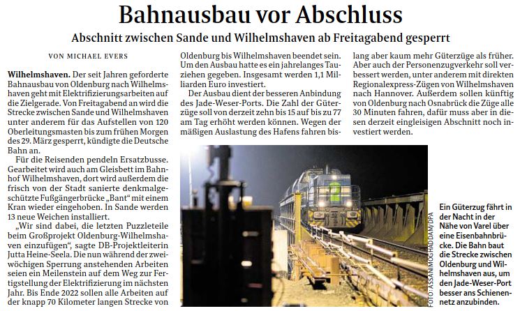 Ein Zeitungsartikel aus der Wümme-Zeitung vom 19.02.2021 über eine Baumaßnahme an der unser Tochterunternehmen Matthäi Trimodalbau beteiligt ist.